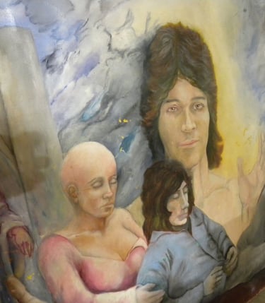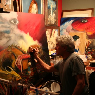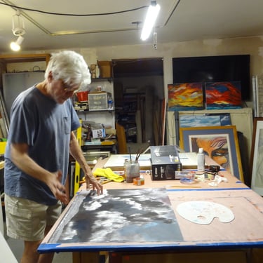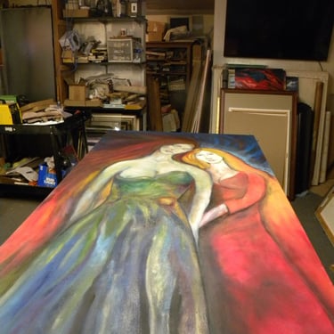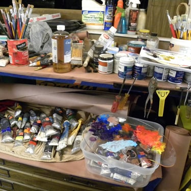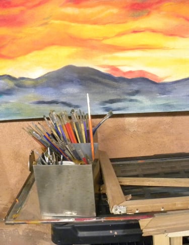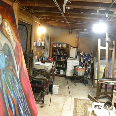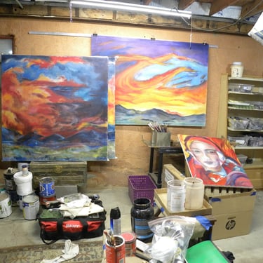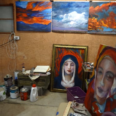 RE Romero-Probst's art studio features a diverse collection of artworks in different displays of completion. Each piece is thoughtfully created to convey a wide array of artistic expressions, inviting visitors to immerse themselves in the creative journey that engage all senses and provide an enriching experience for art lovers should one have the opportunity to be invited to visit.